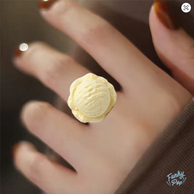 ❁送料無料❁fac0144❁(箱入り)ミニチュア 大きめバニラアイスクリーム リング 【レディース アクセサリー ジュエリー 指輪 ピアス イヤリング ハンドメイド ソフトクリーム】 | ハンドメイドアクセサリー★Funky Pop【送料無料】