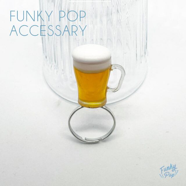 ❁送料無料❁fac0167❁(箱入り)ミニチュア 生ビール リング 【レディース アクセサリー ジュエリー 指輪 ピアス イヤリング ハンドメイド 酒】 | ハンドメイドアクセサリー★Funky Pop【送料無料】
