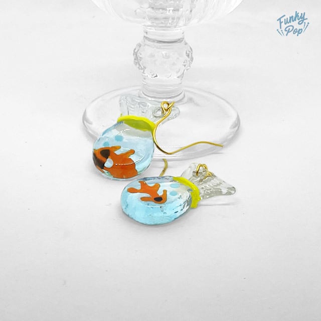 ❁送料無料❁fac0211❁(箱入り)ガラス 手書き風 袋入り金魚すくい ピアス 【レディース アクセサリー ジュエリー ピアス イヤリング ネックレス ハンドメイド 祭り】