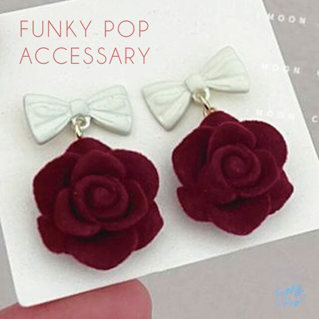 ❁送料無料 即納❁fac0010❁(箱入り)ベロア風ローズ&リボン ピアス【レディース アクセサリー ジュエリー ピアス イヤリング ネックレス ブレスレット 結婚式】 | ハンドメイドアクセサリー★Funky Pop【送料無料】