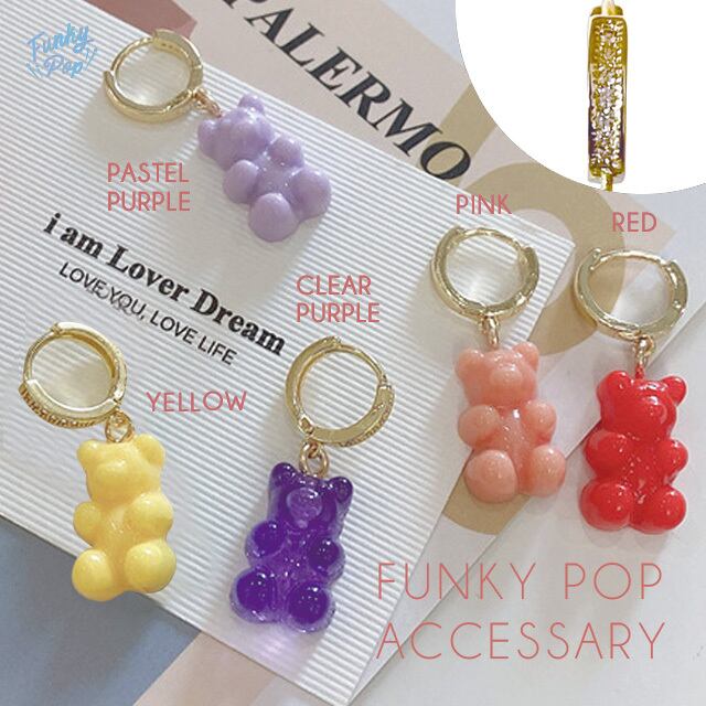 ❁送料無料 即納❁fac0014❁(箱入り)グミ風 クマ ジルコンリング ピアス 【レディース アクセサリー ジュエリー ピアス イヤリング ネックレス ブレスレット 結婚式】 | ハンドメイドアクセサリー★Funky Pop【送料無料】
