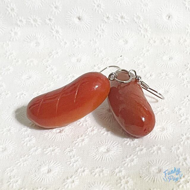 ❁送料無料❁fac0051❁(箱入り)ミニチュア ソーセージ ピアス 【レディース アクセサリー ジュエリー ピアス イヤリング ネックレス ハンドメイド 肉】