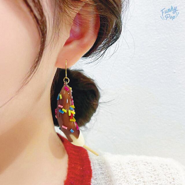 ❁送料無料❁fac0069❁(箱入り)ミニチュア リアル チョコバナナ ピアス 【レディース アクセサリー ジュエリー ピアス イヤリング ネックレス ハンドメイド 祭り】 | ハンドメイドアクセサリー★Funky Pop【送料無料】