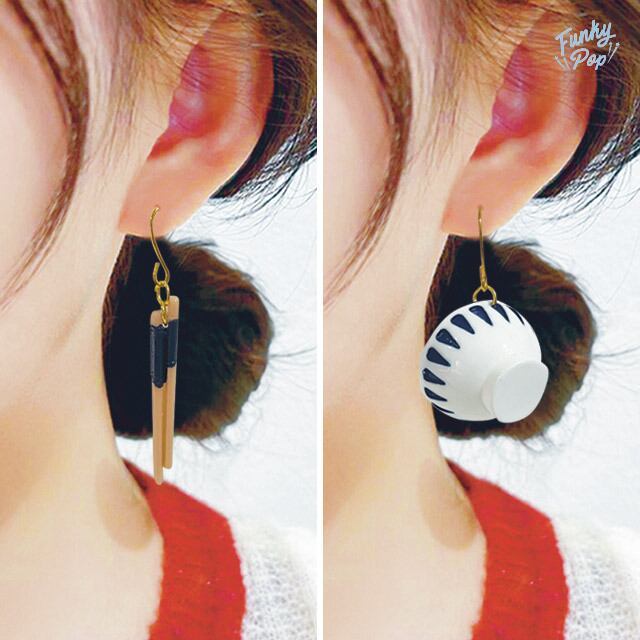 ❁送料無料❁fac0104❁(箱入り)ミニチュア 茶碗&箸セット ピアス 【レディース アクセサリー ジュエリー ピアス イヤリング ネックレス ハンドメイド ご飯】 | ハンドメイドアクセサリー★Funky Pop【送料無料】